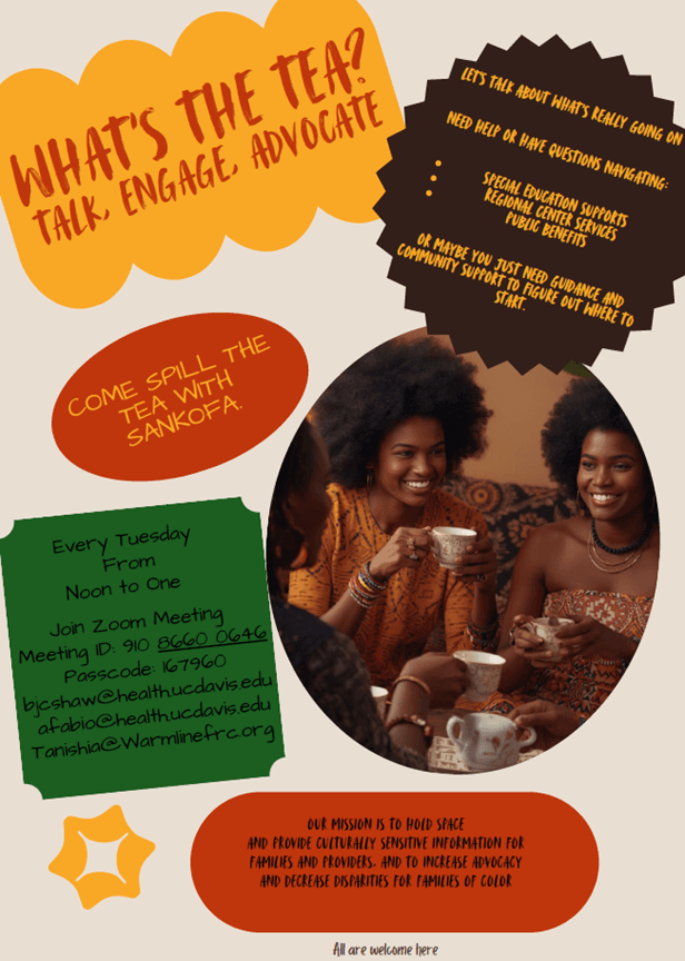 Come spill the tea with SANKOFA, whose mission is to hold space and provide culturally sensitive information for families and providers and to increase advocacy and decrease disparities for families of color.